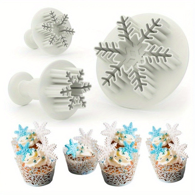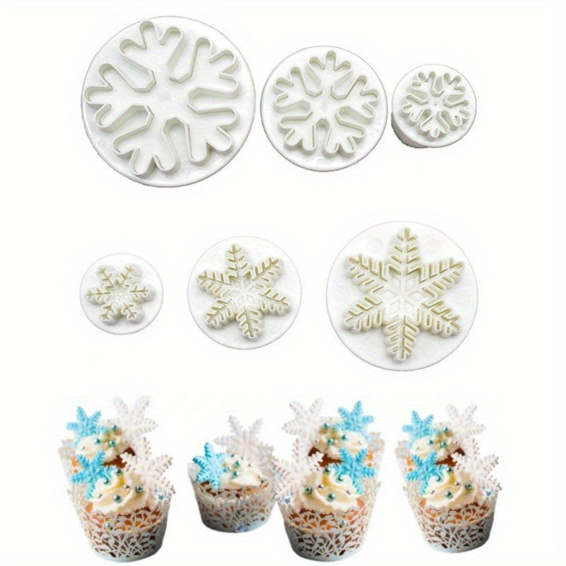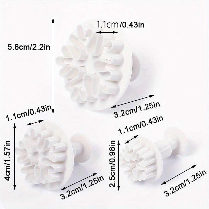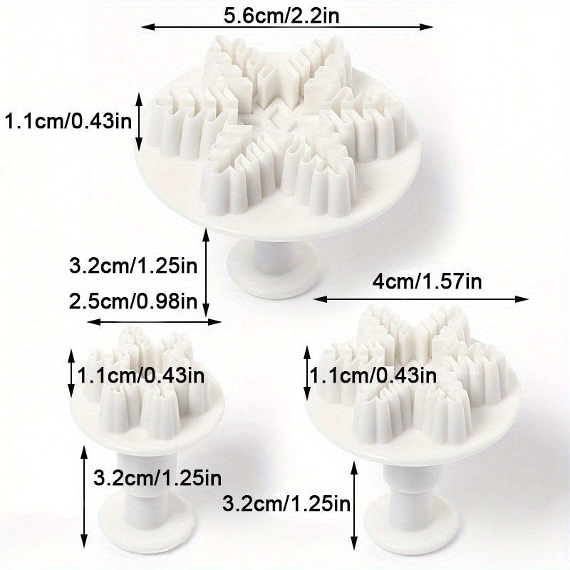 3 részes hópehely alakú rugós kekszvágó készlet, műanyag karácsonyi témájú gumicukor formák az ünnepi sütéshez