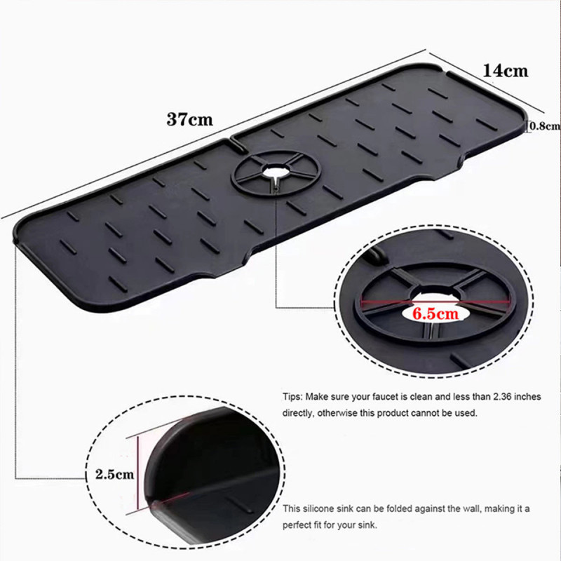 Ez a Fröccsenésvédő konyhai mosogatóhoz kiváló megoldást kínál a csaptelep körüli vízfröccsenések elleni védelemre. A szilikonból készült tömítés könnyen telepíthető és tisztítható, és megakadályozza, hogy a víz kiömljön a mosogató környékén. Elegáns megjelenést kölcsönöz a konyhának vagy fürdőszobának.