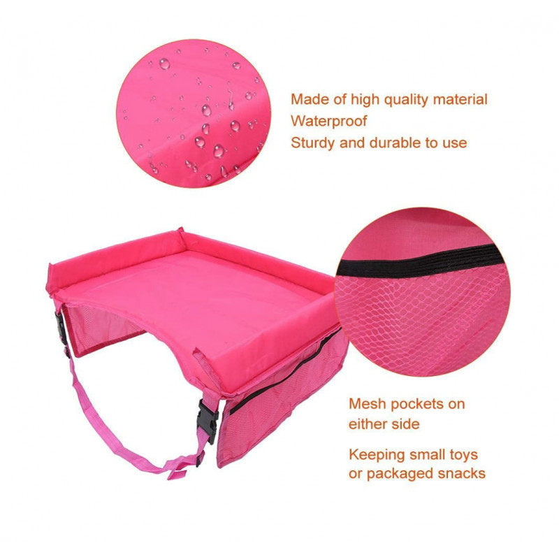 Nagy zsebekkel rendelkezik. A hálós oldalzsebekben kiválóan elférnek játékok, könyvek, zsírkréták. Tárolhatsz benne inni- és ennivalót. Utazás közbeni étkezésekhez is megfelelő partner. Az sem probléma, ha kilöttyen az innivaló a tálcára, a nylon felület vízálló, így megakadályozza az italok beszívódását az anyagba.