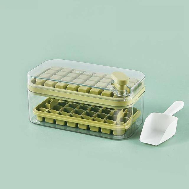 Ha megfagyott helyezd a talpával felfelé a szilikon jégkockatartót az edény tetejére és egy gombnyomással már ki is dobja a tárolóba a kész jégkockákat. Ugye milyen praktikus?