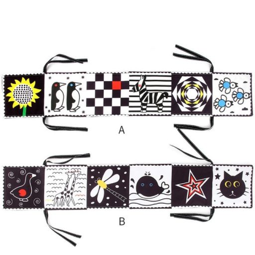 Ezek az egyszerű, de lenyűgöző kontrasztok elbűvölik a pici babák figyelmét, és hozzájárulnak a vizuális észlelés fejlődéséhez.