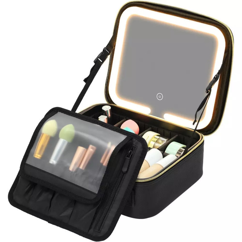 Kozmetikai táska beépített LED-es tükörrel - fekete