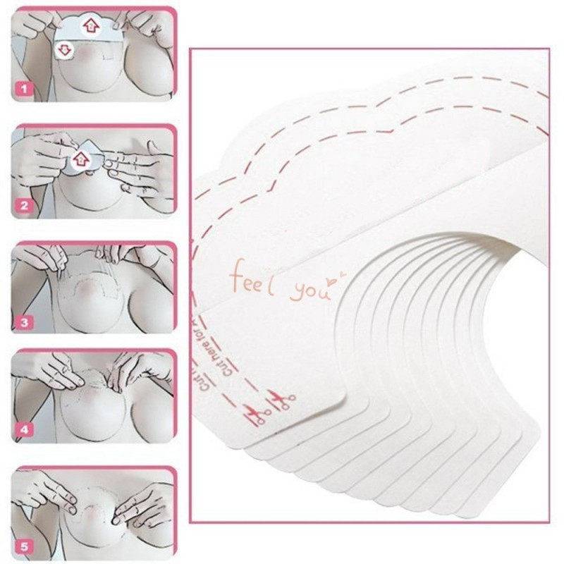 Felhelyezése egyszerű: Ez a trükkös, közepén kettéhajtott tapasz egyesíti a mellragasztó és a szilikonos melltartó előnyeit: egyik felét a mellbimbó fölé kell ragasztani, másik felénél fogva pedig meg kell emelni a mellett a kívánt magasságba, majd a tapasz másik felével rögzíteni.