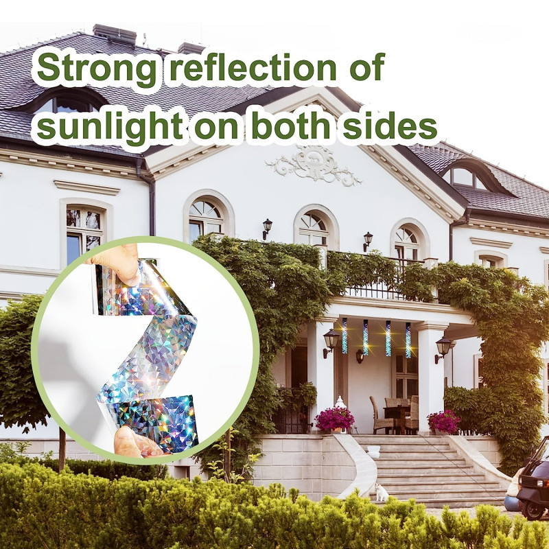A madárijesztő fényvisszaverő szalag nagyon menő cucc! Elijeszti a galambokat, a harkályokat, a sirályokat és a fecskéket a kertedből. A kettős oldalú holografikus felülete visszaveri a fényt, és elrémíti a tollas barátainkat. Nem kell hozzá áram, csak a természetes fény, és máris működik!