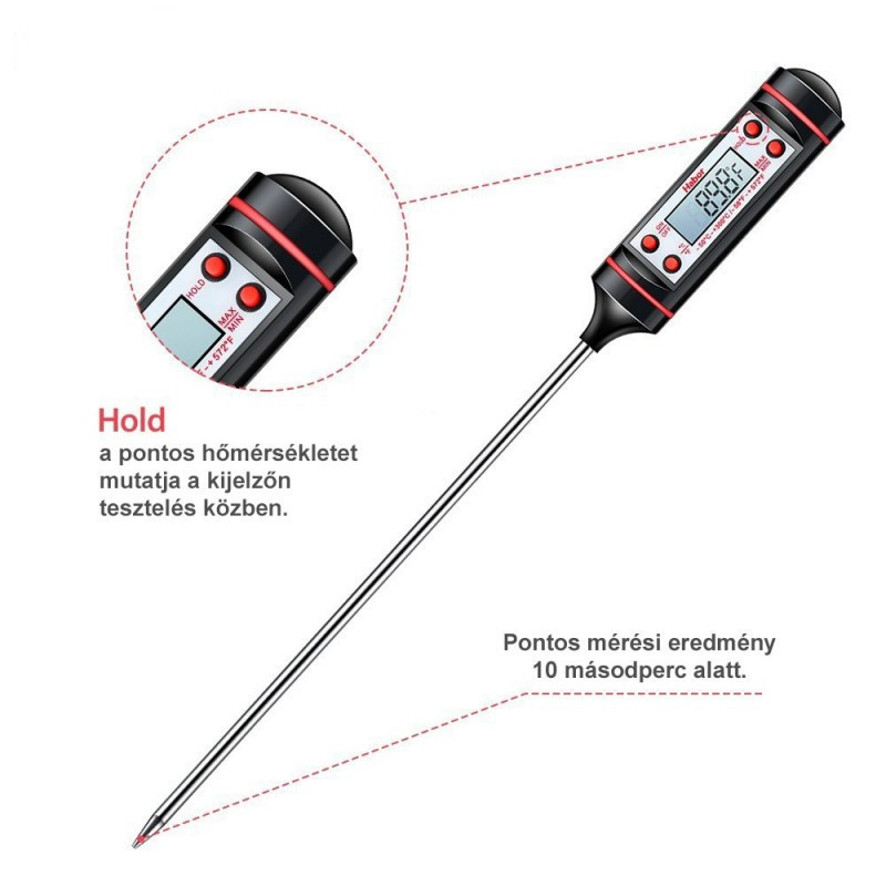 Maghőmérő, ételhőmérő, konyhai hőmérő (digitális)