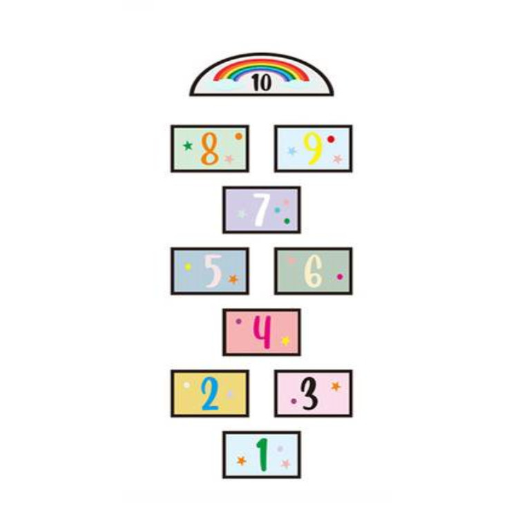 Rajzolás, valamint színes kréták helyett, csak tedd le a számokat a földre, rögzítsd a matricával száraz és pormentes padlón és indulhat is a móka.