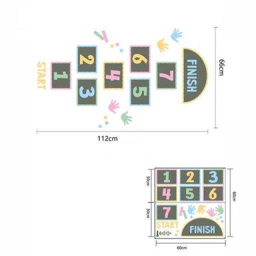 Rajzolás, valamint színes kréták helyett, csak tedd le a számokat a földre, rögzítsd a matricával száraz és pormentes padlón és indulhat is a móka.
