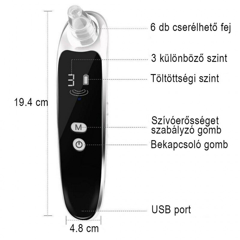 Használata rendkívül egyszerű és biztonságos. A készülékhez hat különböző fej jár, hogy a lehető legpontosabban kezelhesd az arcodat. Mindegyik fej más méretű vagy alakú nyílással rendelkezik, így az arcod minden területén a lehető legpontosabban és legbiztonságosabban szállhatsz szembe a mitesszerekkel. A termék szívóerősségét is szabályozhatod, hogy minél hatékonyabb végezhesd el az arctisztításodat.