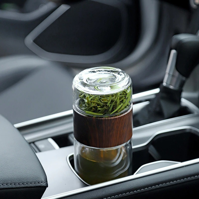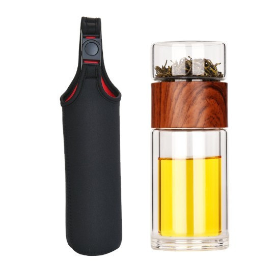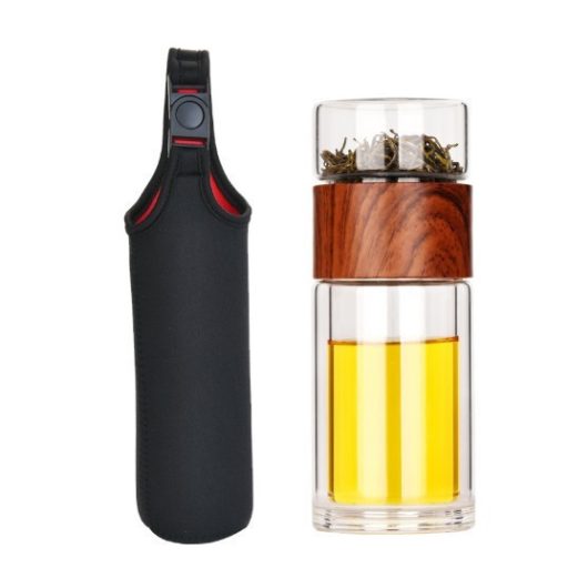 Teásbögre, teásüveg szűrővel, kulacstartó tokkal