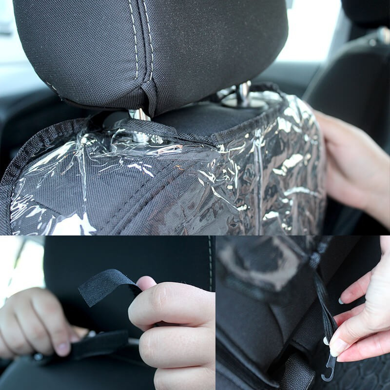 Felhelyezése nagyon egyszerű. A tépőzár segítségével erősítsd az ülés fejtámlája köré, majd rögzítsd a kampókkal az üléshuzatoknál megszokott módon. Vízlepergető anyagból készült így az esetlegesen ráboruló folyadékok sem tehetnek kárt a kárpitban.