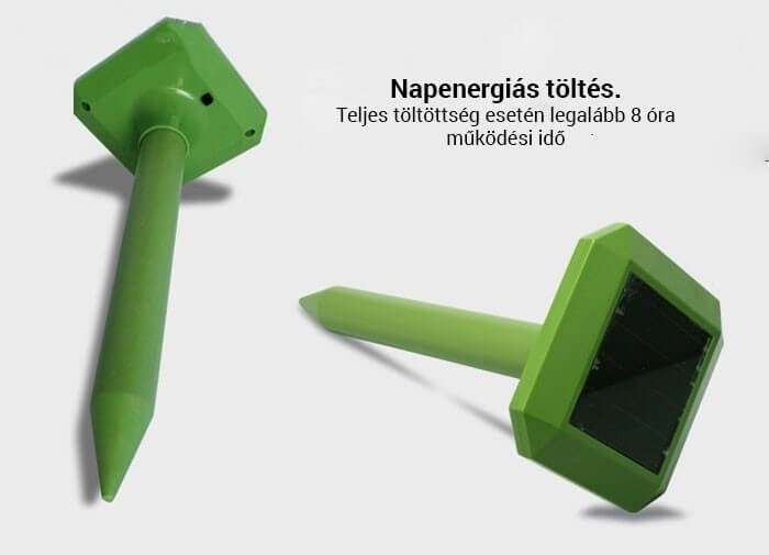 A riasztók és a csapdák közül ez egy megbízható és környezetbarát módszer, amely hatékonyan űzi el telkedről a kártevőket. Neked csupán csak a földbe kell szúrnod és az önállóan elvégzi a munkát.