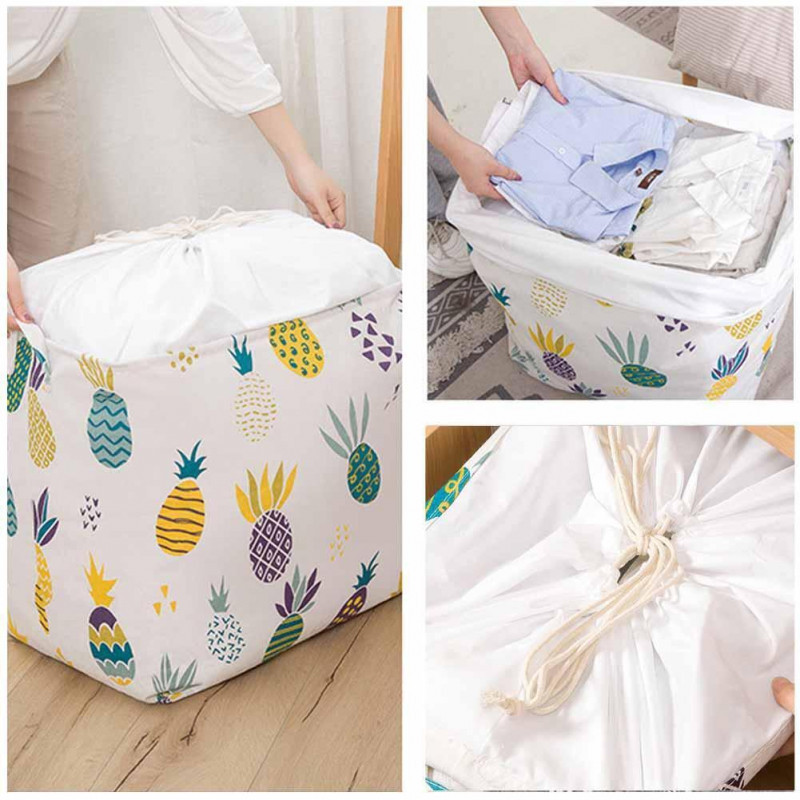 Nagy kapacitású összehajtható ruhatároló fülekkel, húzózsinórral