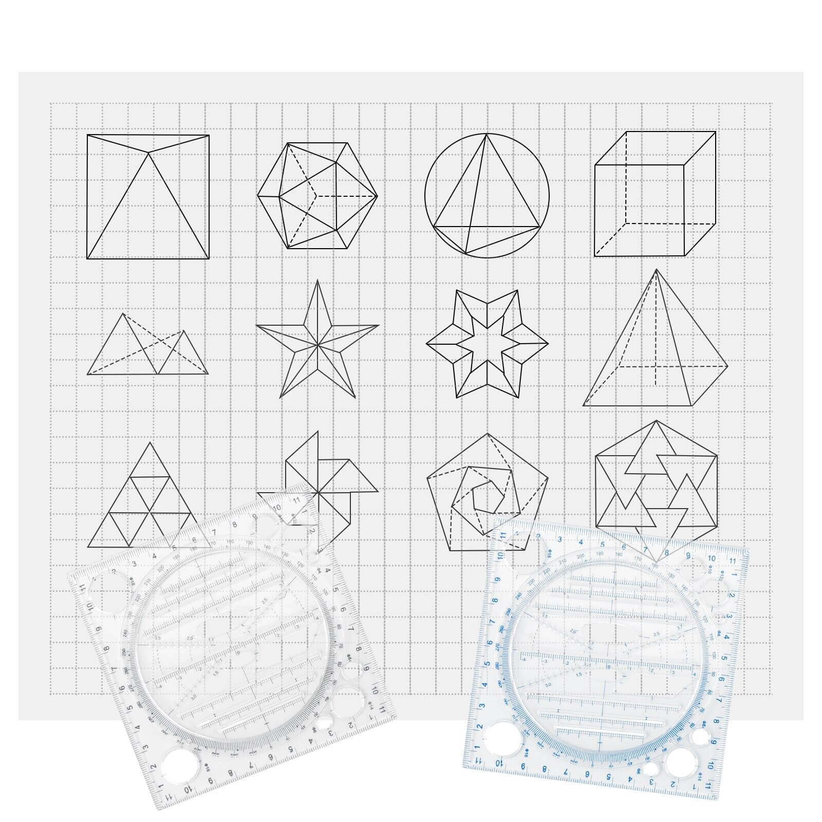Tervező vonalzó, Művész vonalzó, Multifunkcionális forgatható rajzvonalzó