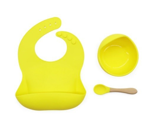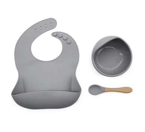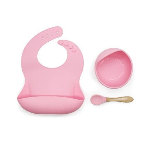 Szilikon étkészlet babáknak, állítható előke és vákuumtalpas tál kanálkával