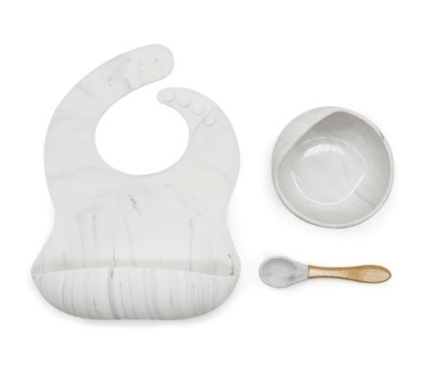 A készlet tartalmaz egy előkét, egy tálat és egy kanálkát. Biztonságos és megbízható alapanyagból, prémium minőségű szilikonból készültek, illetve BPA mentesek is. Az anyagának köszönhetően könnyen és egyszerűen tisztíthatóak.